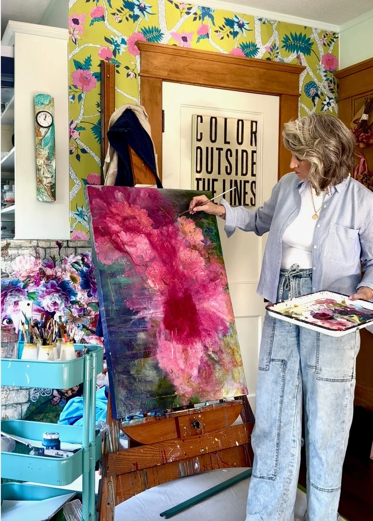 Each painting begins with an intuitive impulse—often a color, a mark, or a fragment of found material—and proceeds without a fixed plan, inviting chance, improvisation, and risk. Through repeated cycles of layering, erasing, and reasserting, the pieces become maps of identity under pressure, revealing how personal and communal histories intertwine. Her life as a woman and mother—informs her choices, while her background in social work and mental health grounds her in empathy and responsibility to audience and subject. She seeks work that acknowledges complexity, honors difference, and opens space for dialogue about justice, care, and collective memory.